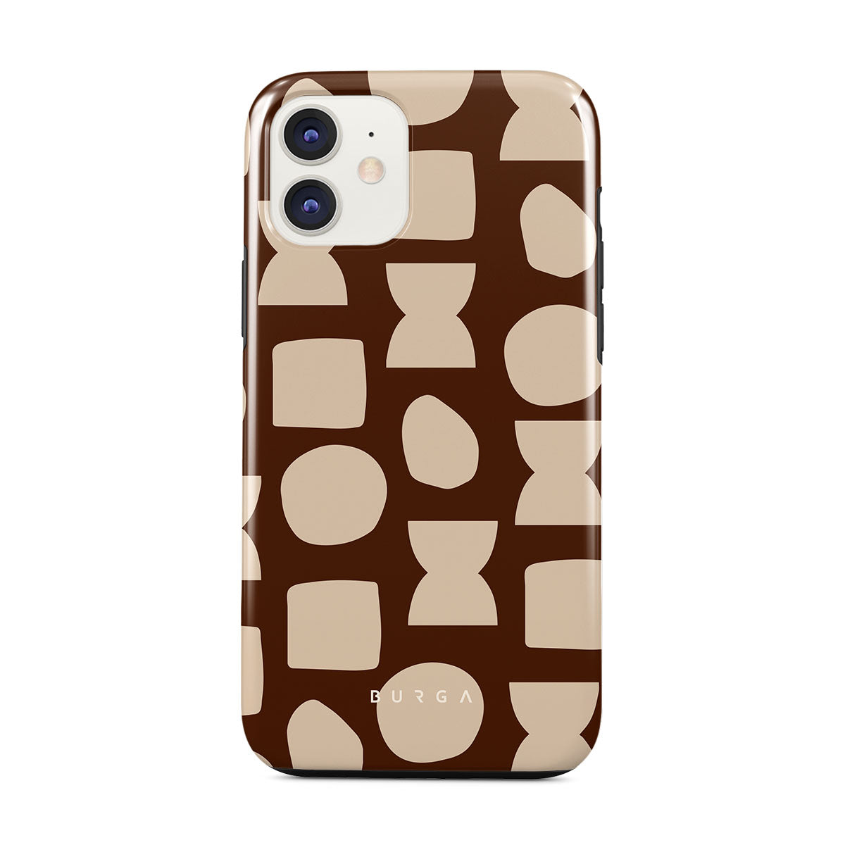 Our Terracotta iPhone 11 phone case design whispers warmth and grounded energy. Against a rich brown background, an interplay of light shapes unfolds, captivating the eye with an array of circles, squares, and hourglasses. Each shape is a testament to the beauty found in simplicity.
