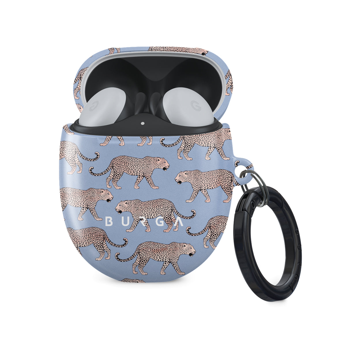 Be wild and free with our Tourist Trap Google Pixel Buds 2 case cover. Pastel baby blue color with playful tiger print will add some edginess to your style while simultaneously protecting your Google Pixel Buds 2 case from any sharp edges out there. Our case fits perfectly snug around Google Pixel Buds 2 . “Like a glove!” one might say. And it won’t disrupt the wireless charging capabilities of the newer model. There’s even an LED light indicator to prove it (don’t worry, wired charging still works, too). When fitted, the BURGA case will protect the delicate Google Pixel Buds 2 case beneath it from scratches, bumps, and drops while remaining scratch-free itself. Our signature design pattern prints are High Quality, and will never peel or fade away- thanks to our unique printing technology. And finally, a handy carabiner is there to make your life easier and more convenient: just snap it around your keys or belt loop and tackle the day head-on. Your music is right there by your side when you need it.