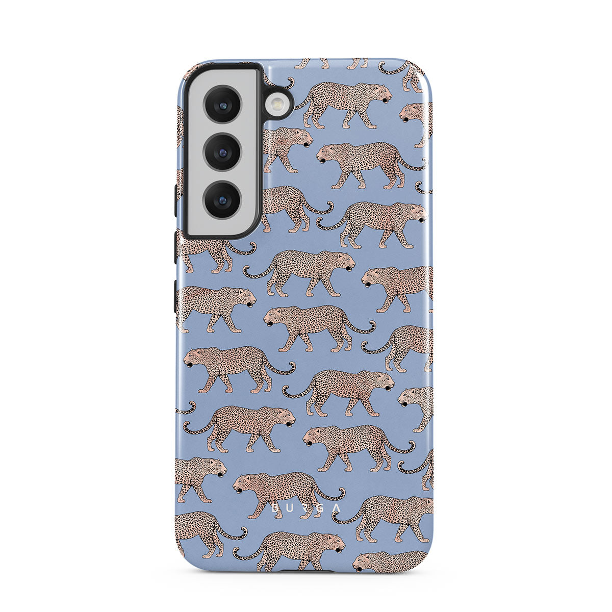 Be wild and free with our Tourist Trap Samsung Galaxy S22 phone case. The tiger print in a pastel blue background has a chic feel of an actual designer item. Add some edge to your style and also protect your phone from any sharp edges at the same time.