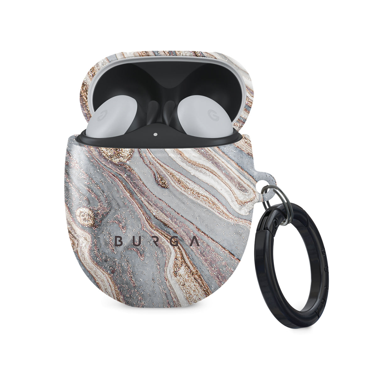 Google Pixel Buds 2 case cover, match the protective qualities of the with an always trending marble pattern to create the best addition to your style. Our case fits perfectly snug around Google Pixel Buds 2 . “Like a glove!” one might say. And it won’t disrupt the wireless charging capabilities of the newer model. There’s even an LED light indicator to prove it (don’t worry, wired charging still works, too). When fitted, the BURGA case will protect the delicate Google Pixel Buds 2 case beneath it from scratches, bumps, and drops while remaining scratch-free itself. Our signature design pattern prints are High Quality, and will never peel or fade away- thanks to our unique printing technology. And finally, a handy carabiner is there to make your life easier and more convenient: just snap it around your keys or belt loop and tackle the day head-on. Your music is right there by your side when you need it.