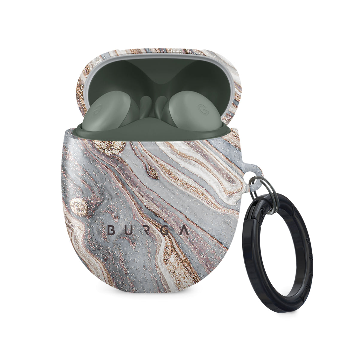 Google Pixel Buds A case cover, match the protective qualities of the with an always trending marble pattern to create the best addition to your style. Our case fits perfectly snug around Google Pixel Buds A . “Like a glove!” one might say. And it won’t disrupt the wireless charging capabilities of the newer model. There’s even an LED light indicator to prove it (don’t worry, wired charging still works, too). When fitted, the BURGA case will protect the delicate Google Pixel Buds A case beneath it from scratches, bumps, and drops while remaining scratch-free itself. Our signature design pattern prints are High Quality, and will never peel or fade away- thanks to our unique printing technology. And finally, a handy carabiner is there to make your life easier and more convenient: just snap it around your keys or belt loop and tackle the day head-on. Your music is right there by your side when you need it.
