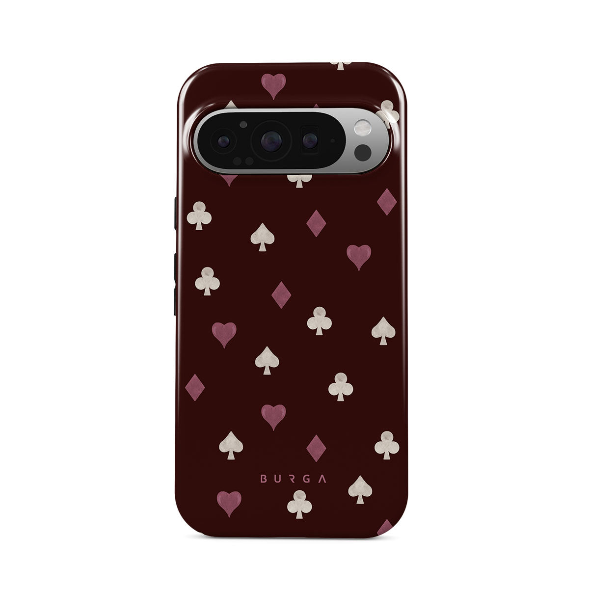 Nothing is as it appears. Hearts, clubs, diamonds, and spades—stacked in your favor or playing against you? This Google Pixel 9 Pro XL phone case design features a rich burgundy background and minimalist suits that make for a game where the rules are constantly shifting.
