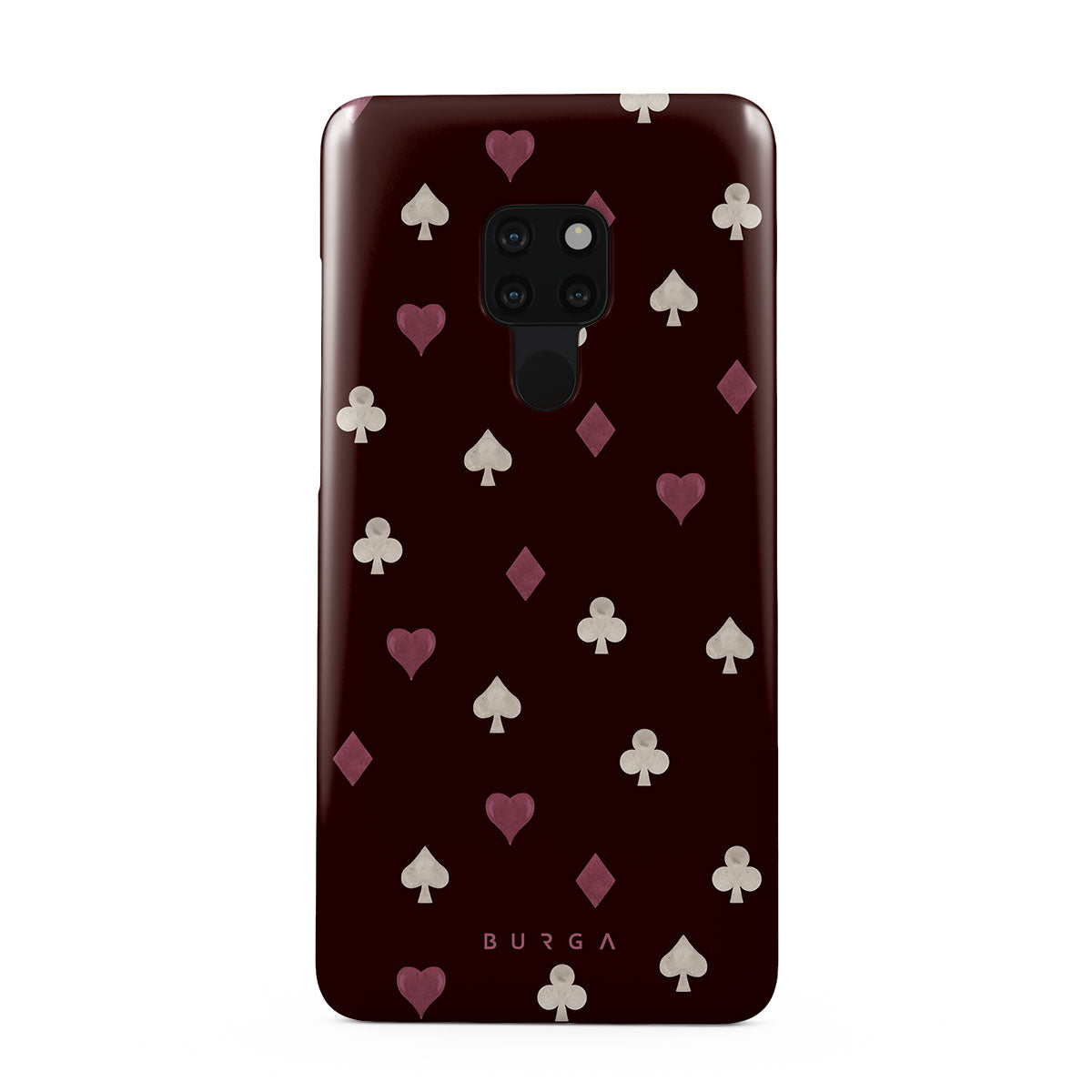 Nothing is as it appears. Hearts, clubs, diamonds, and spades—stacked in your favor or playing against you? This Huawei Mate 20 phone case design features a rich burgundy background and minimalist suits that make for a game where the rules are constantly shifting.