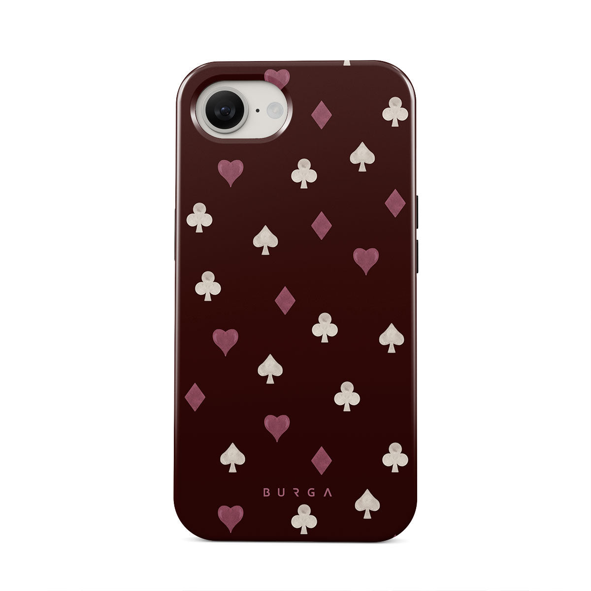 Nothing is as it appears. Hearts, clubs, diamonds, and spades—stacked in your favor or playing against you? This iPhone 16e phone case design features a rich burgundy background and minimalist suits that make for a game where the rules are constantly shifting.