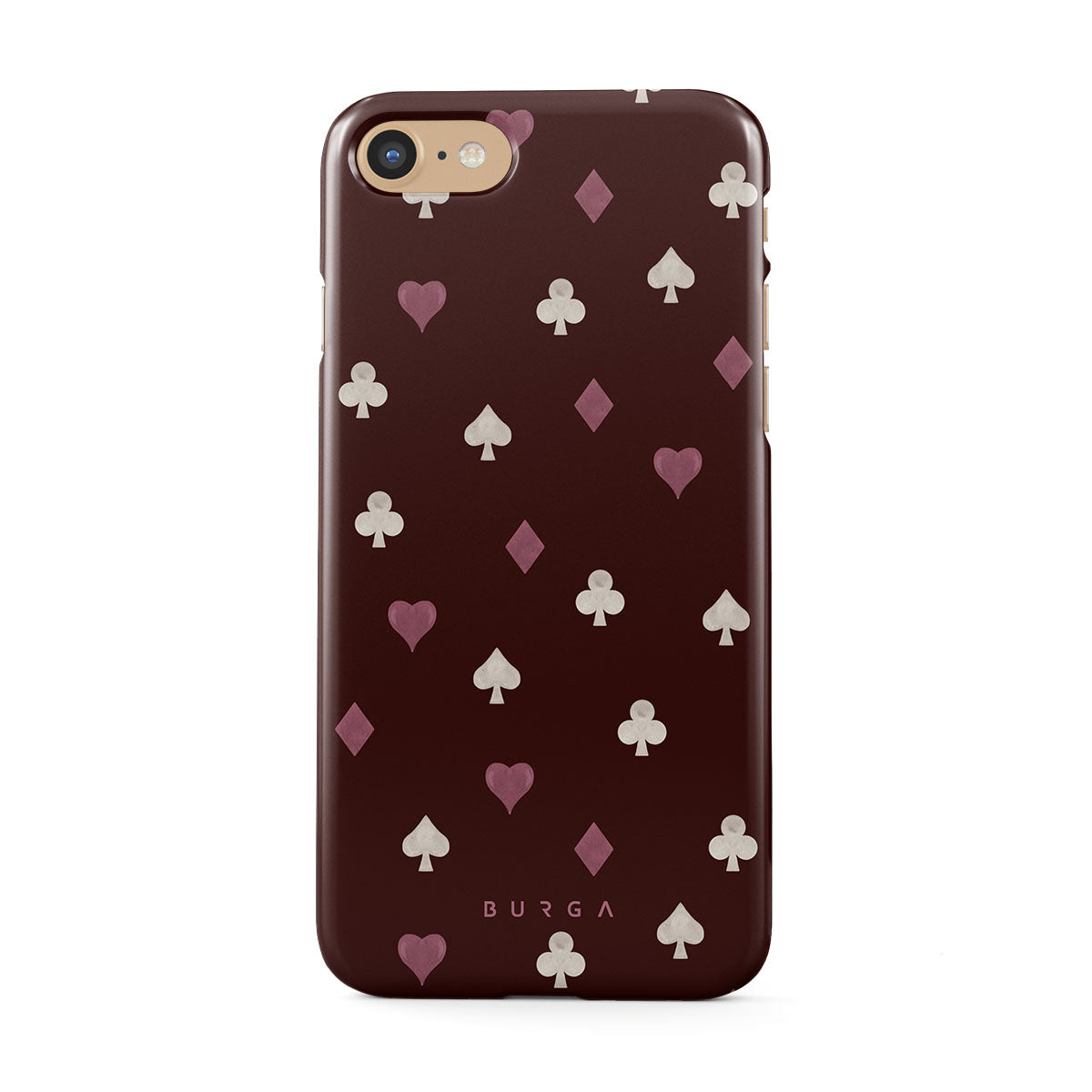 Nothing is as it appears. Hearts, clubs, diamonds, and spades—stacked in your favor or playing against you? This iPhone SE (2022) phone case design features a rich burgundy background and minimalist suits that make for a game where the rules are constantly shifting.