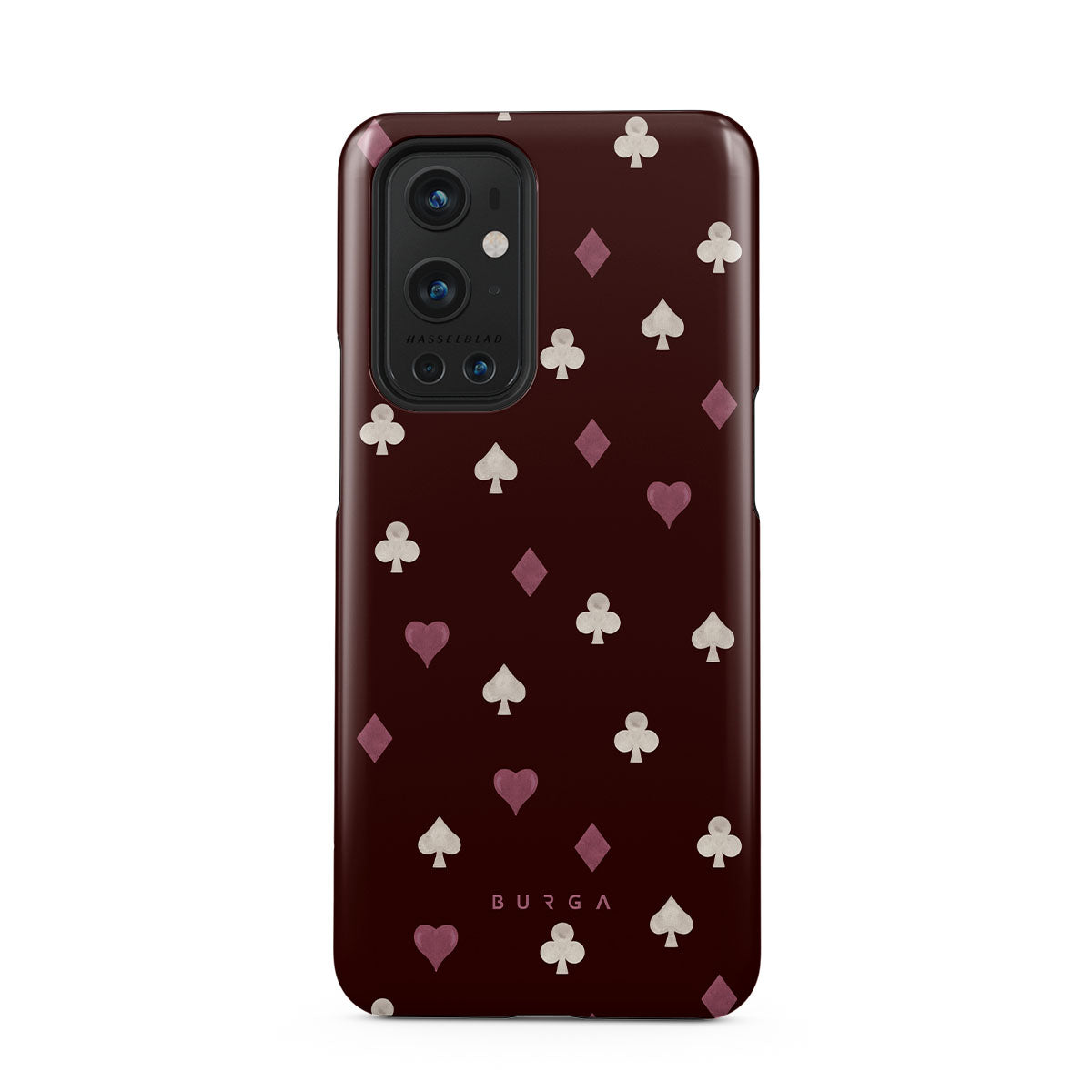 Nothing is as it appears. Hearts, clubs, diamonds, and spades—stacked in your favor or playing against you? This OnePlus 9 Pro phone case design features a rich burgundy background and minimalist suits that make for a game where the rules are constantly shifting.