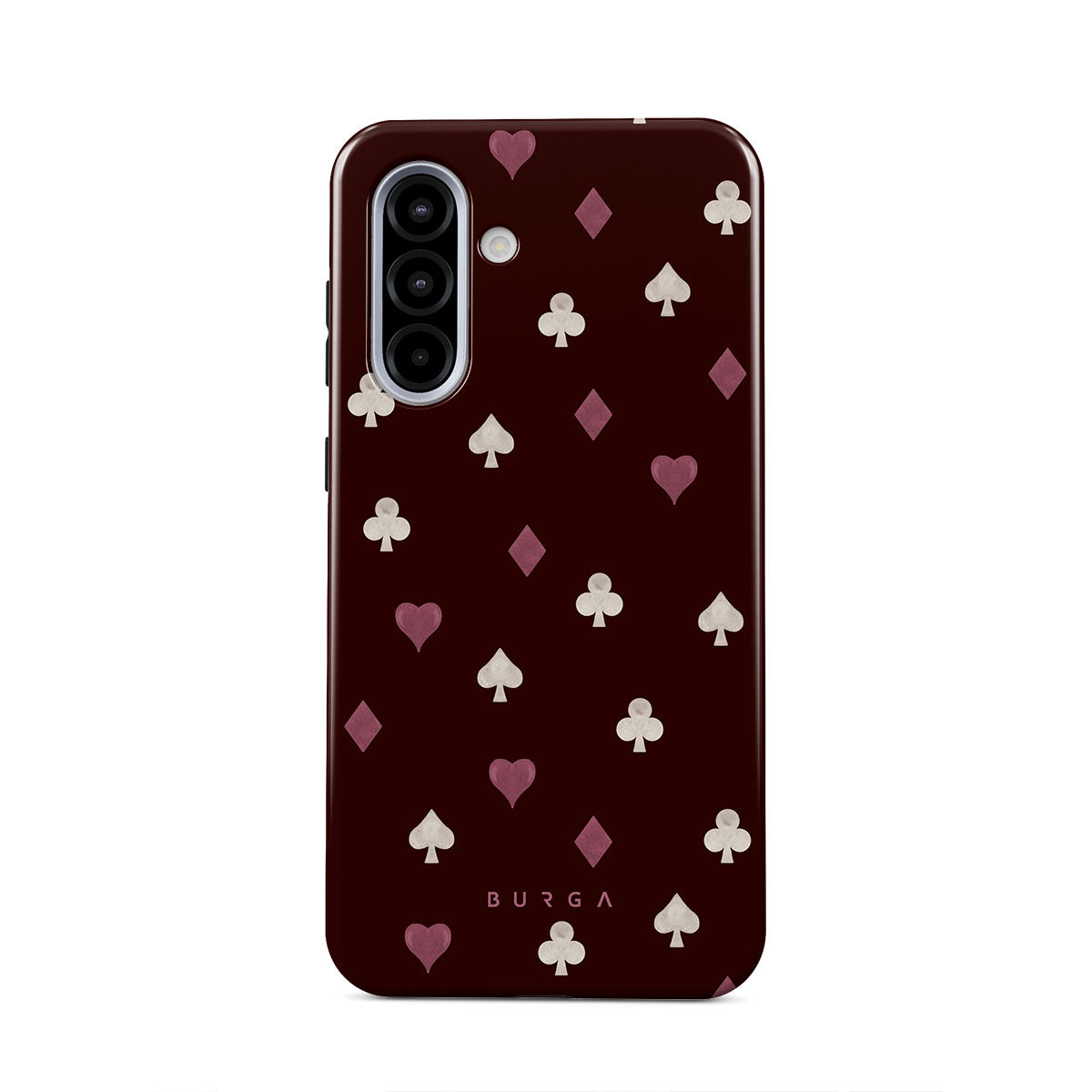 Nothing is as it appears. Hearts, clubs, diamonds, and spades—stacked in your favor or playing against you? This Samsung Galaxy A36 5G phone case design features a rich burgundy background and minimalist suits that make for a game where the rules are constantly shifting.