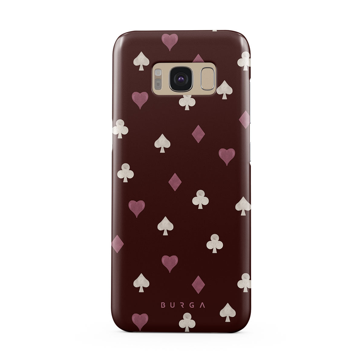 Nothing is as it appears. Hearts, clubs, diamonds, and spades—stacked in your favor or playing against you? This Samsung Galaxy S8 phone case design features a rich burgundy background and minimalist suits that make for a game where the rules are constantly shifting.