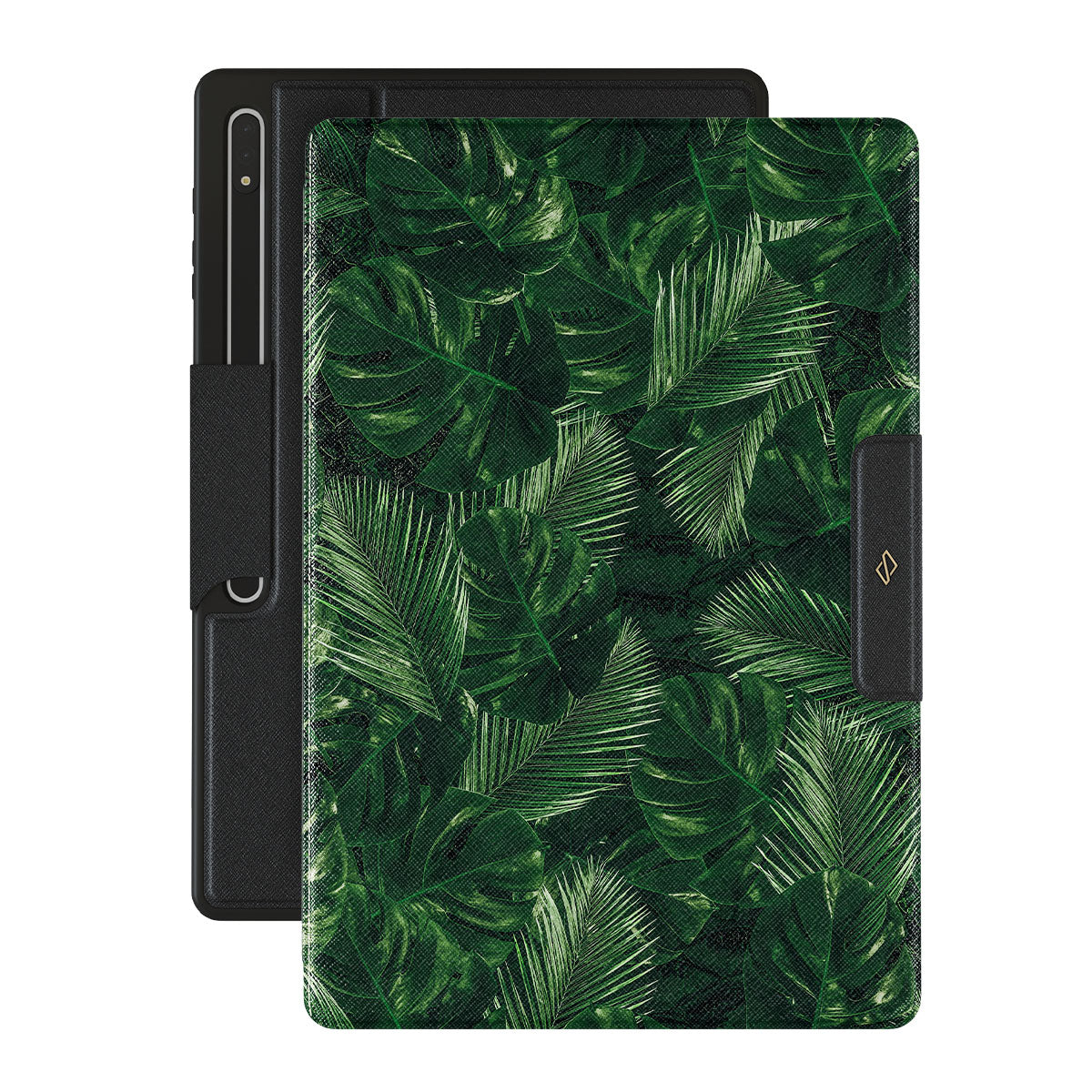 Enter the World of Jungles with our Tropical Garden Samsung Galaxy Tab S8 Ultra folio case cover showcasing mesmerizing greens. Palm fronds and Monstera leaves' unique patterns will add a tropical touch to your wardrobe while offering heavy-duty protection to your Galaxy Tab.