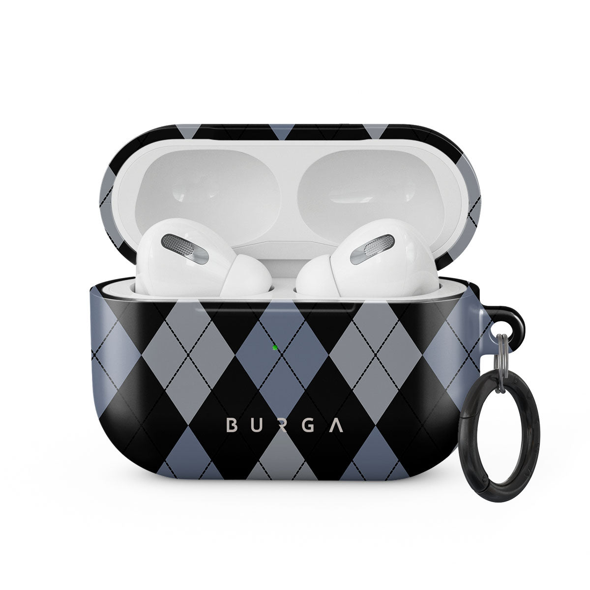 Discover our Trouble Apple Airpods Pro case cover design—a classic argyle pattern featuring stark black diamonds that seamlessly blend with two distinct shades of blue. Made for those who respect the classics but aren't afraid to disrupt the norm.