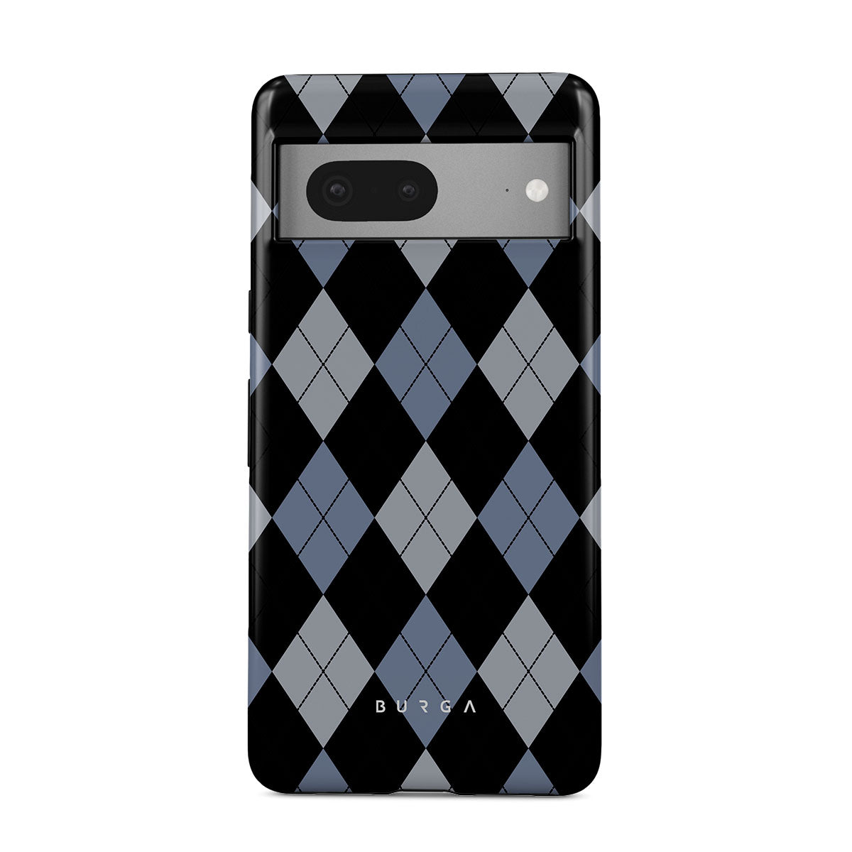 Discover our Trouble Google Pixel 7 phone case design—a classic argyle pattern featuring stark black diamonds that seamlessly blend with two distinct shades of blue. Made for those who respect the classics but aren't afraid to disrupt the norm.