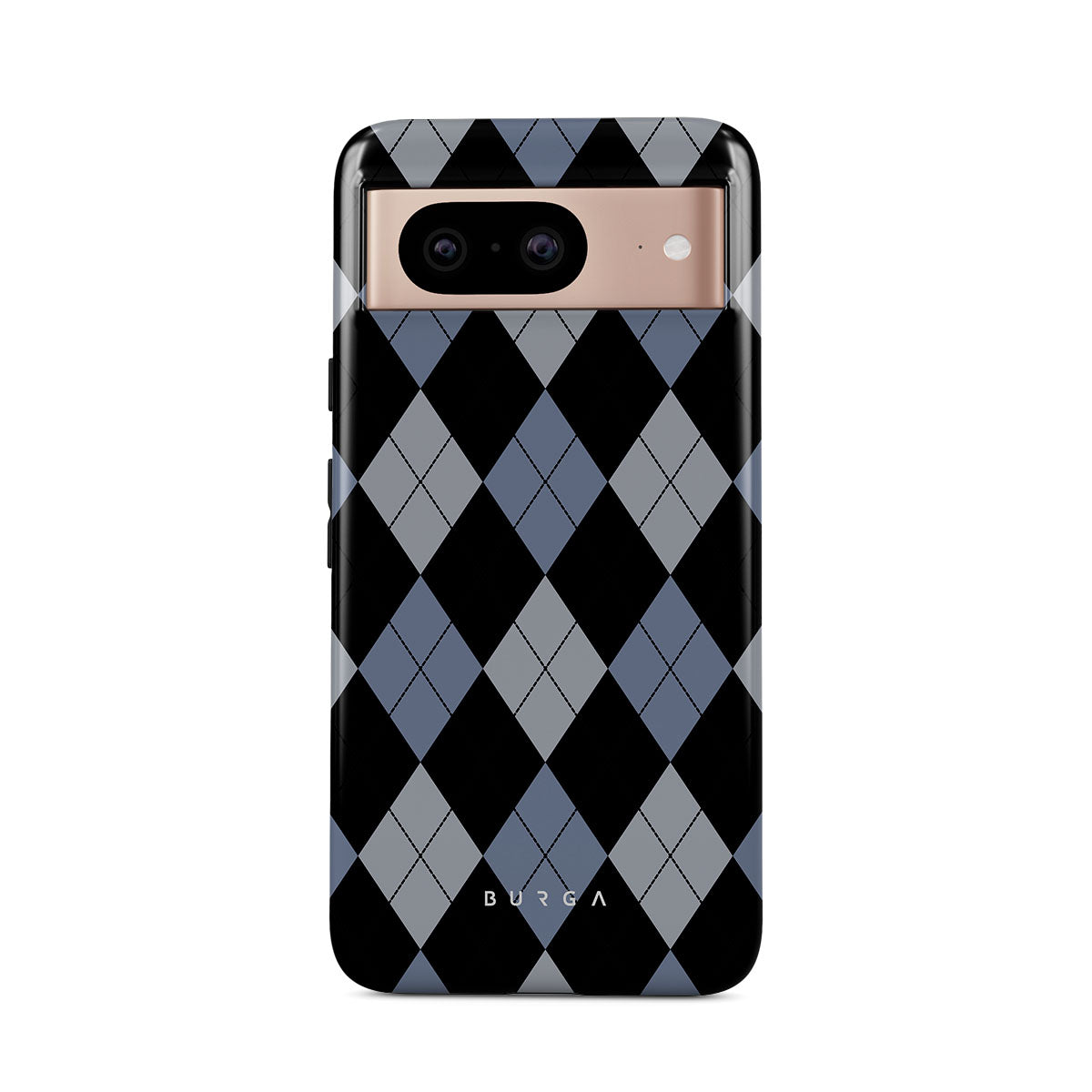 Discover our Trouble Google Pixel 8 phone case design—a classic argyle pattern featuring stark black diamonds that seamlessly blend with two distinct shades of blue. Made for those who respect the classics but aren't afraid to disrupt the norm.
