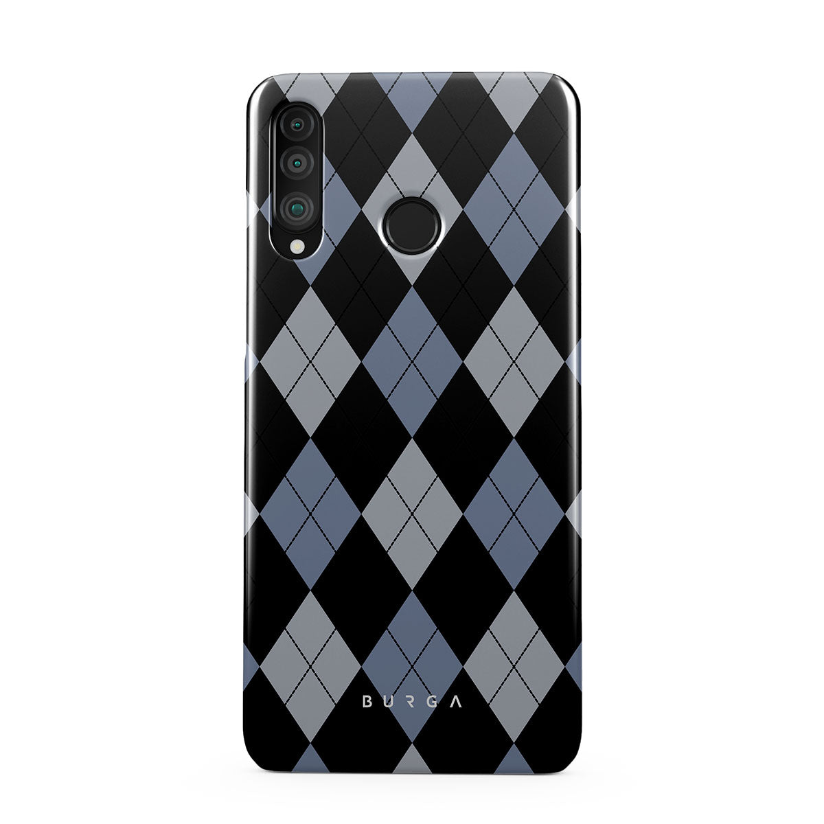 Discover our Trouble Huawei P30 Lite phone case design—a classic argyle pattern featuring stark black diamonds that seamlessly blend with two distinct shades of blue. Made for those who respect the classics but aren't afraid to disrupt the norm.