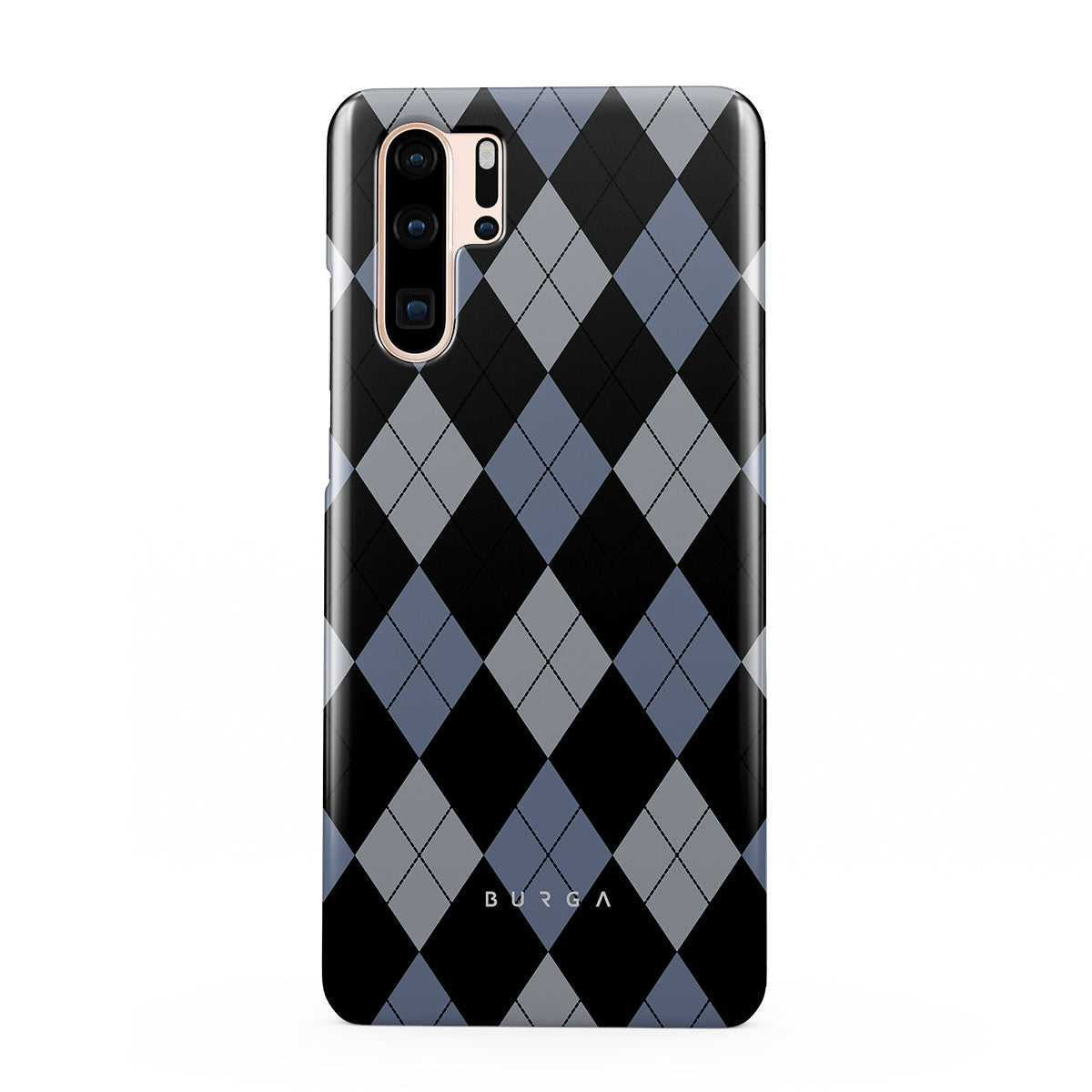 Discover our Trouble Huawei P30 Pro phone case design—a classic argyle pattern featuring stark black diamonds that seamlessly blend with two distinct shades of blue. Made for those who respect the classics but aren't afraid to disrupt the norm.