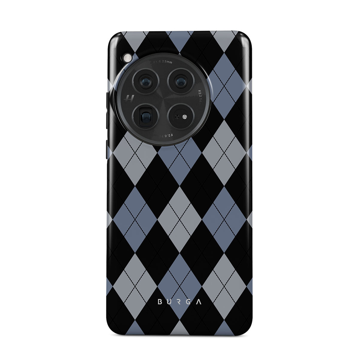 Discover our Trouble OnePlus 12 phone case design—a classic argyle pattern featuring stark black diamonds that seamlessly blend with two distinct shades of blue. Made for those who respect the classics but aren't afraid to disrupt the norm.