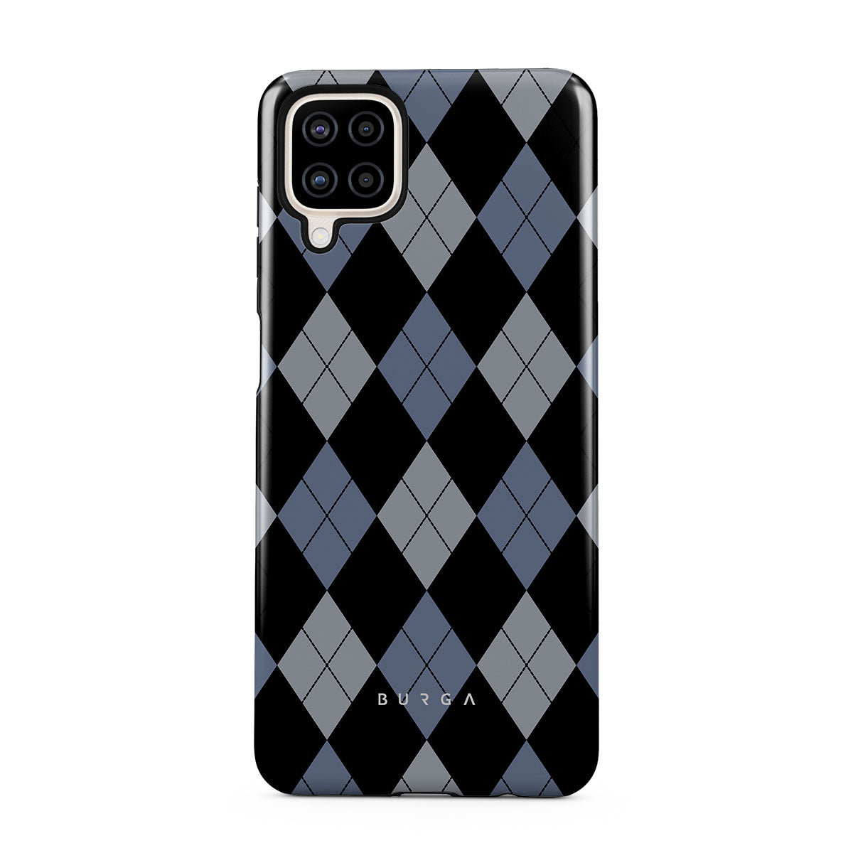 Discover our Trouble Samsung Galaxy A12 4G phone case design—a classic argyle pattern featuring stark black diamonds that seamlessly blend with two distinct shades of blue. Made for those who respect the classics but aren't afraid to disrupt the norm.