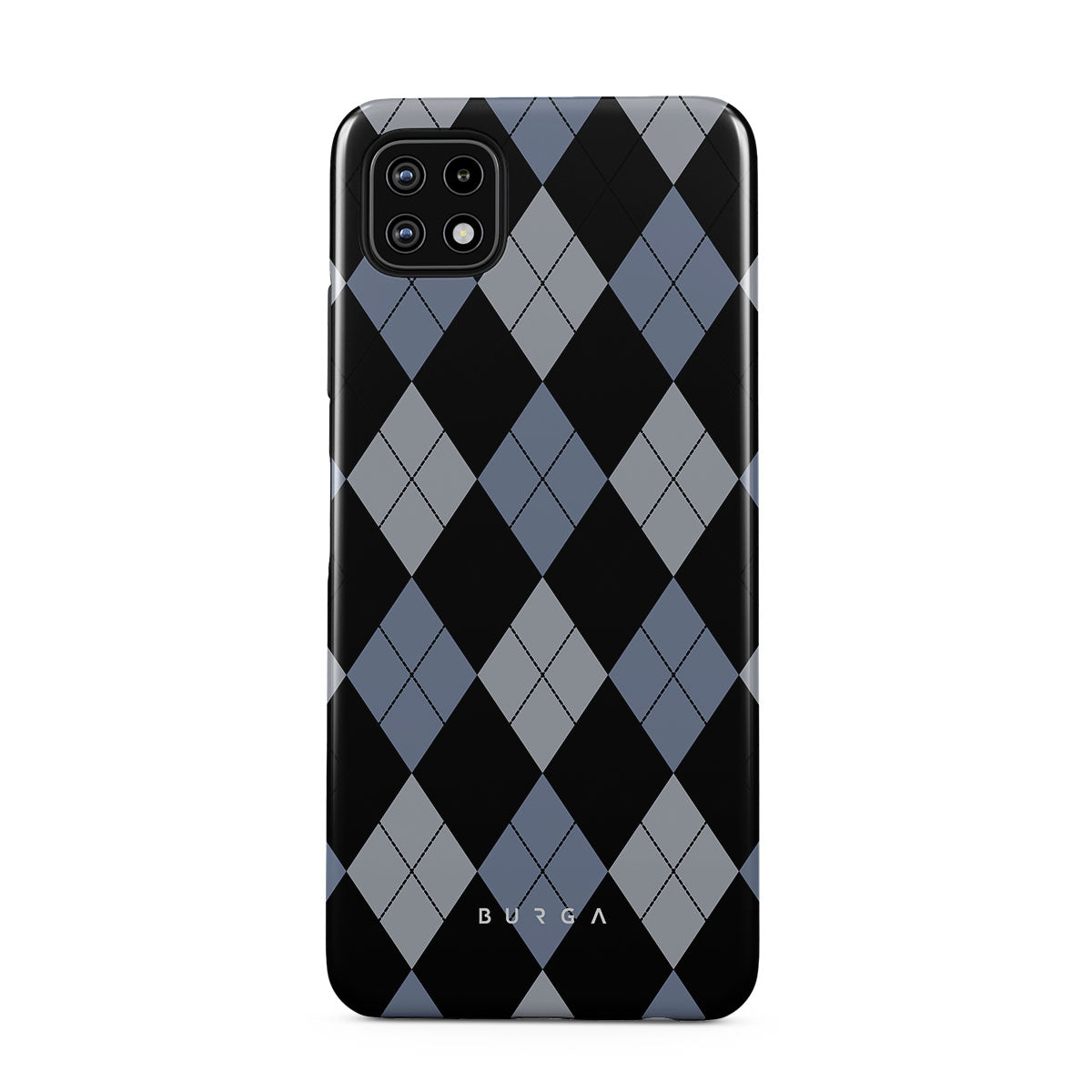 Discover our Trouble Samsung Galaxy A22 5G phone case design—a classic argyle pattern featuring stark black diamonds that seamlessly blend with two distinct shades of blue. Made for those who respect the classics but aren't afraid to disrupt the norm.