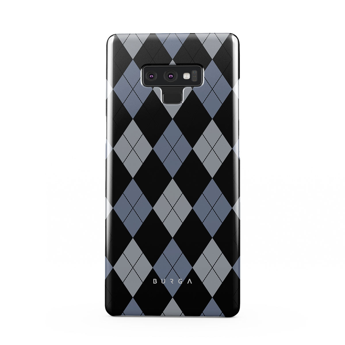 Discover our Trouble Samsung Galaxy Note 9 phone case design—a classic argyle pattern featuring stark black diamonds that seamlessly blend with two distinct shades of blue. Made for those who respect the classics but aren't afraid to disrupt the norm.