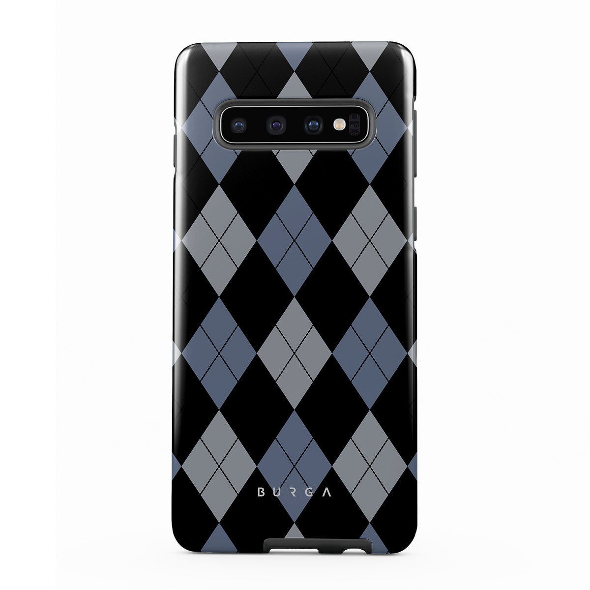 Discover our Trouble Samsung Galaxy S10 4G phone case design—a classic argyle pattern featuring stark black diamonds that seamlessly blend with two distinct shades of blue. Made for those who respect the classics but aren't afraid to disrupt the norm.
