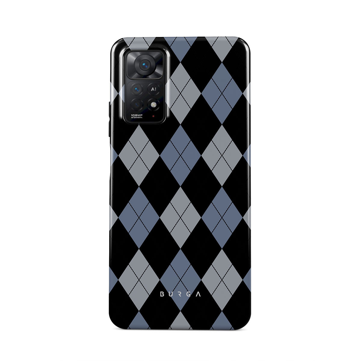 Discover our Trouble Xiaomi Redmi Note 11 Pro phone case design—a classic argyle pattern featuring stark black diamonds that seamlessly blend with two distinct shades of blue. Made for those who respect the classics but aren't afraid to disrupt the norm.
