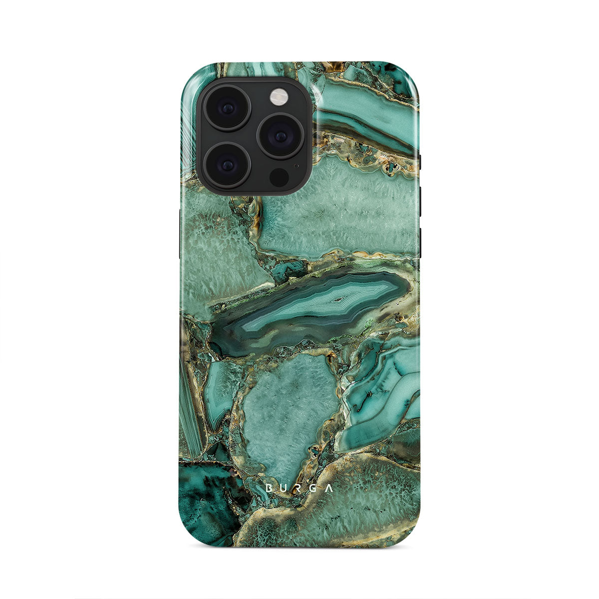 Marble meets geode look in our durable Ubud Jungle iPhone 15 Pro phone case. You can rest sure that our stunning turquoise phone case will protect your device from any unexpected falls while adding a dreamy touch to your style.