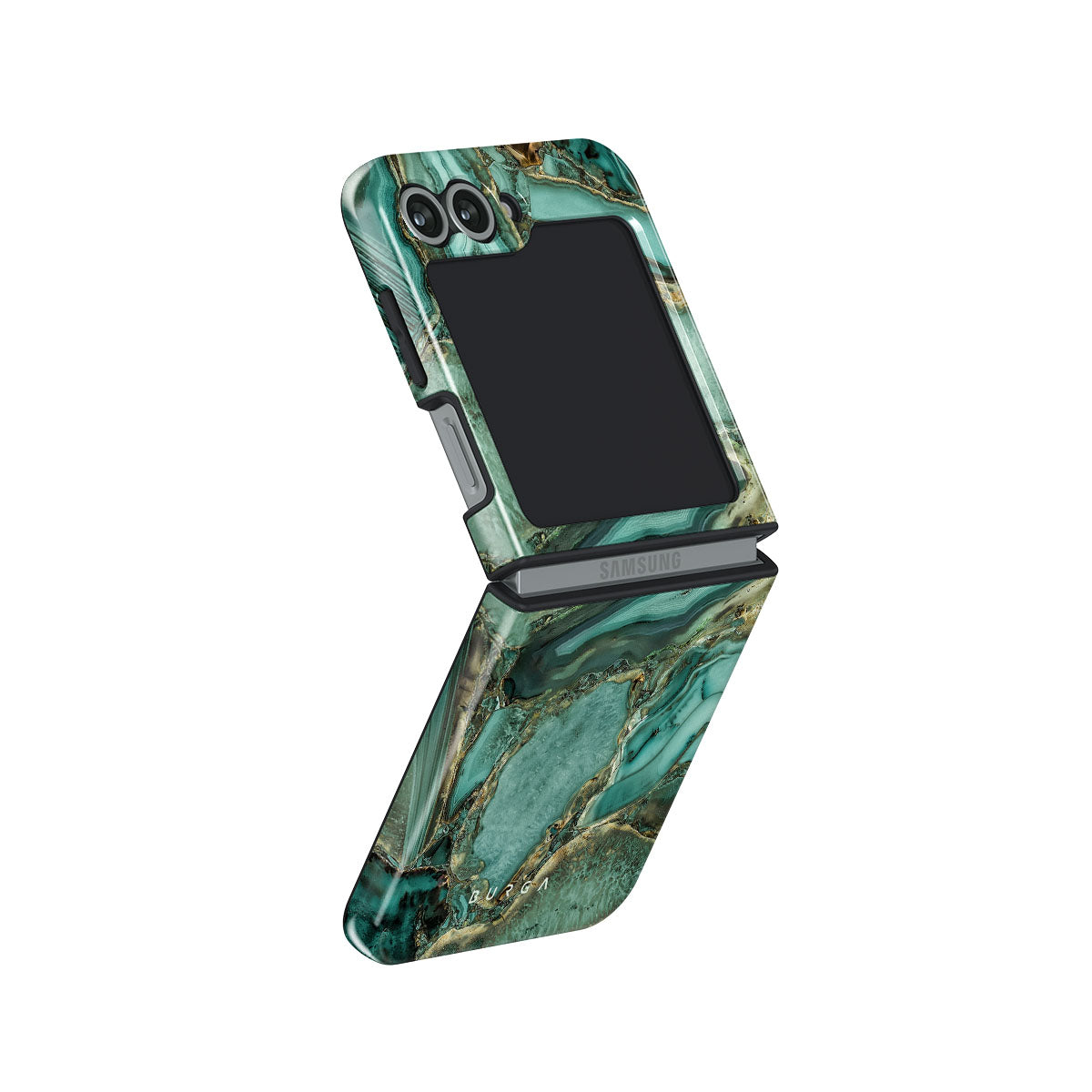 Marble meets geode look in our durable Ubud Jungle Samsung Galaxy Z Flip 6 phone case. You can rest sure that our stunning turquoise phone case will protect your device from any unexpected falls while adding a dreamy touch to your style.