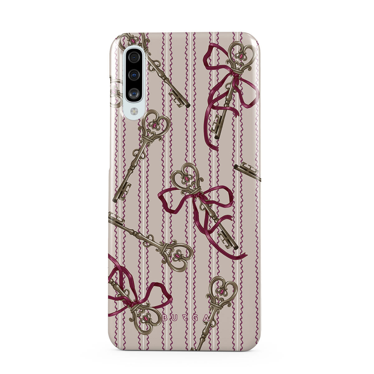 Some doors don’t need keys—just a willingness to step through. The Unlocked Samsung Galaxy A50 phone case design is a tangle of keys, ribbons, and secrets, waiting for someone curious enough to find out what’s on the other side.