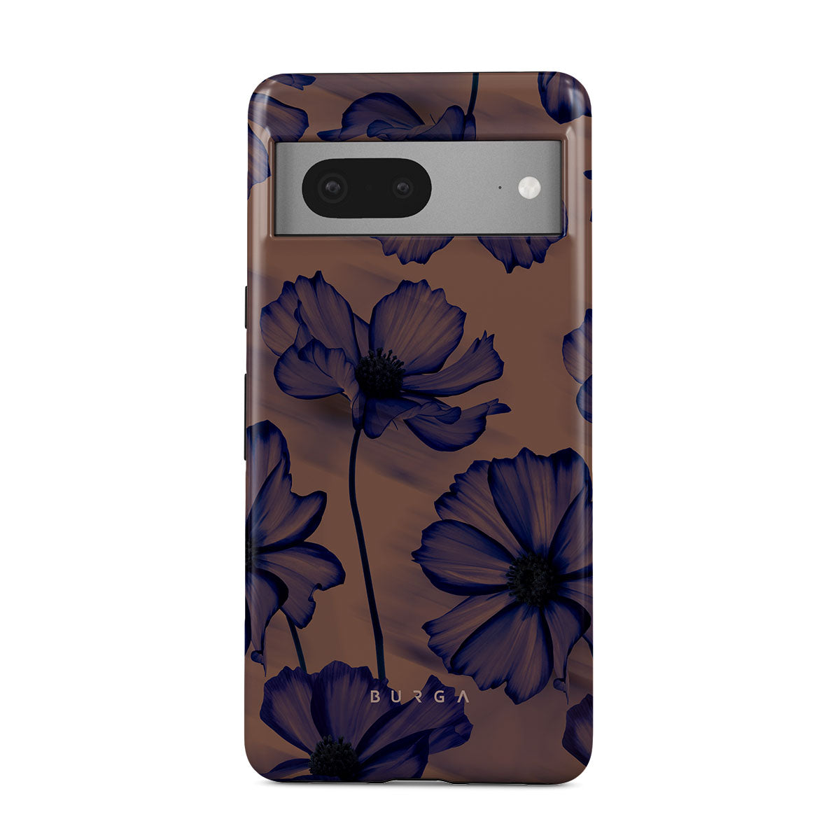 Discover our Velvet Night design. On a soft nude backdrop, blue poppies dance in the untamed rhythm of the wind. A blend of night's peace and daring energy, this Google Pixel 7a phone case is perfect for those who dream big and seek adventure.