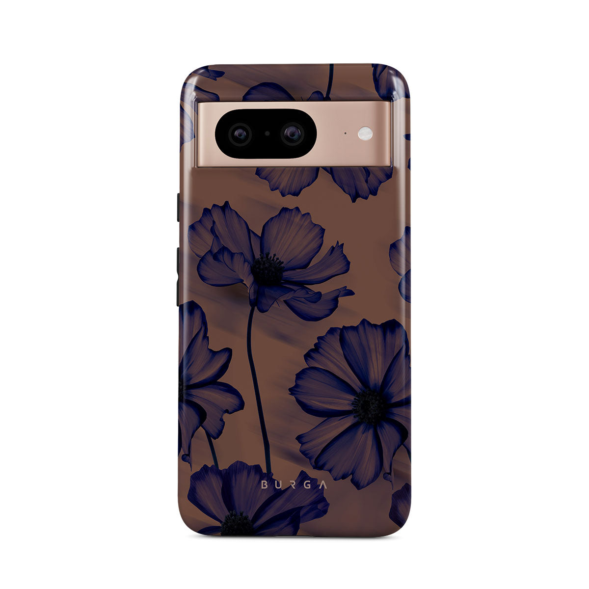 Discover our Velvet Night design. On a soft nude backdrop, blue poppies dance in the untamed rhythm of the wind. A blend of night's peace and daring energy, this Google Pixel 8 phone case is perfect for those who dream big and seek adventure.