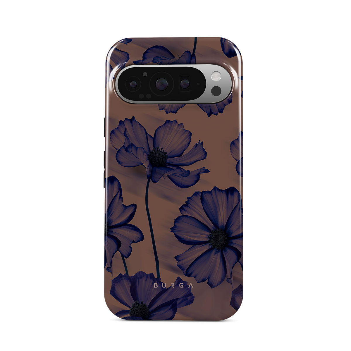 Discover our Velvet Night design. On a soft nude backdrop, blue poppies dance in the untamed rhythm of the wind. A blend of night's peace and daring energy, this Google Pixel 9 Pro XL phone case is perfect for those who dream big and seek adventure.