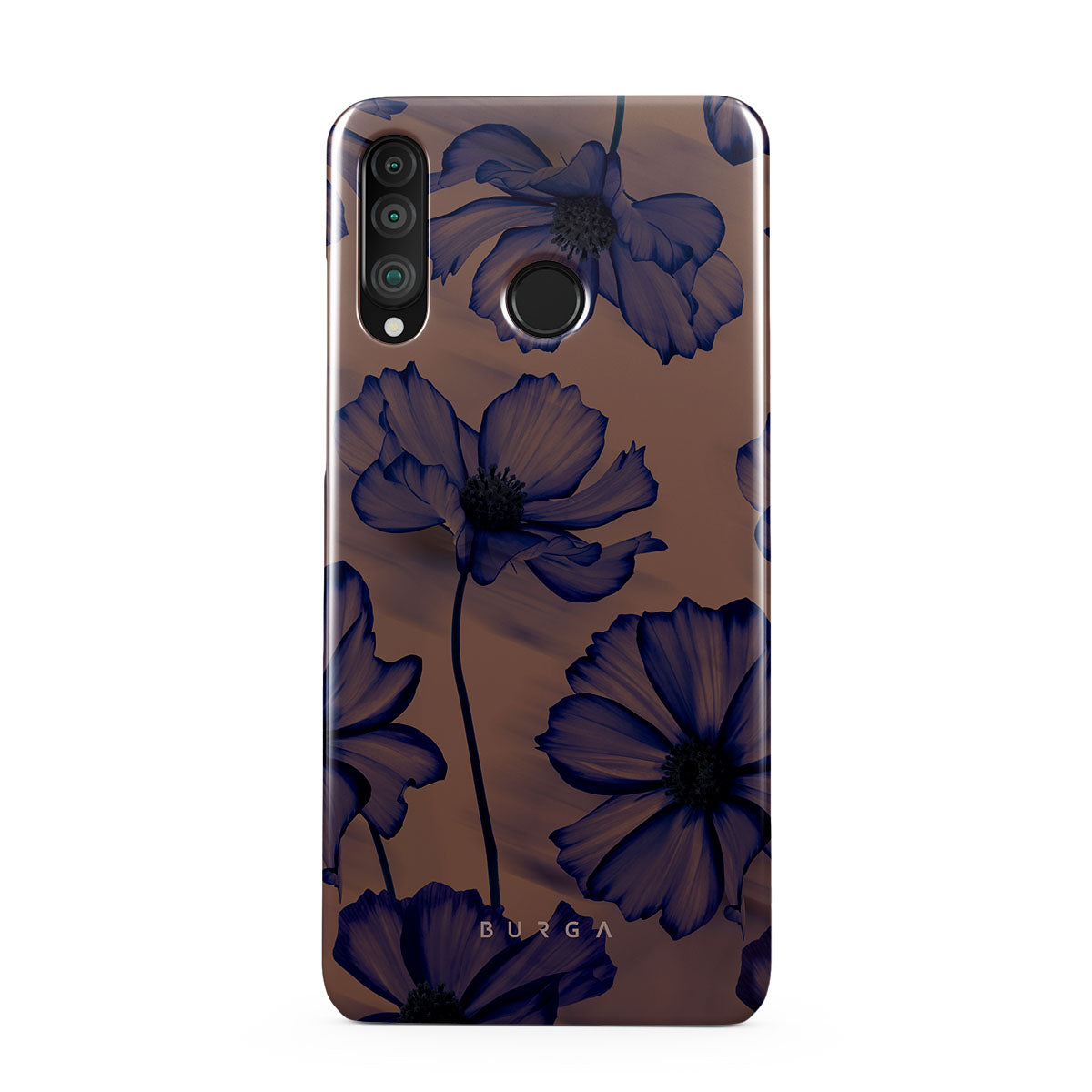 Discover our Velvet Night design. On a soft nude backdrop, blue poppies dance in the untamed rhythm of the wind. A blend of night's peace and daring energy, this Huawei P30 Lite phone case is perfect for those who dream big and seek adventure.