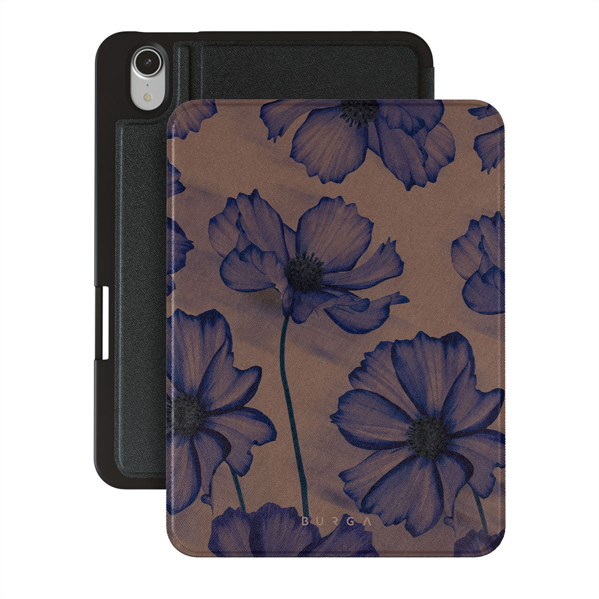 Discover our Velvet Night design. On a soft nude backdrop, blue poppies dance in the untamed rhythm of the wind. A blend of night's peace and daring energy, this iPad Mini 8.3 (A17 Pro/6th Gen) 2021 folio case is perfect for those who dream big and seek adventure.