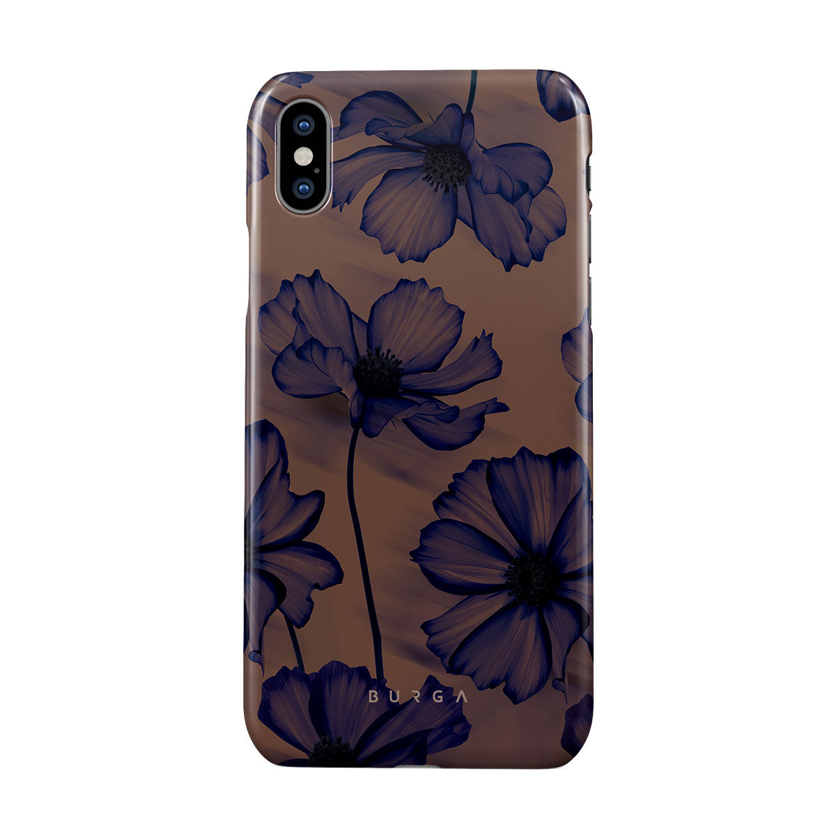 Discover our Velvet Night design. On a soft nude backdrop, blue poppies dance in the untamed rhythm of the wind. A blend of night's peace and daring energy, this iPhone XS Max phone case is perfect for those who dream big and seek adventure.