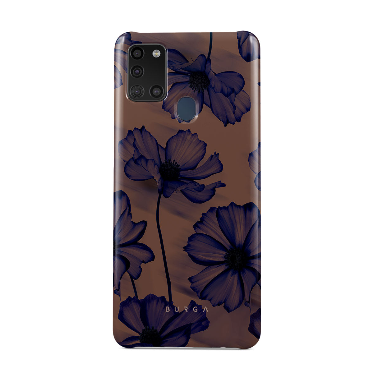 Discover our Velvet Night design. On a soft nude backdrop, blue poppies dance in the untamed rhythm of the wind. A blend of night's peace and daring energy, this Samsung Galaxy A21s 4G phone case is perfect for those who dream big and seek adventure.