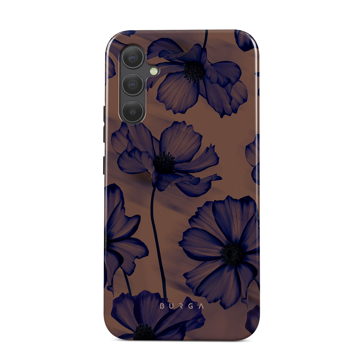 Discover our Velvet Night design. On a soft nude backdrop, blue poppies dance in the untamed rhythm of the wind. A blend of night's peace and daring energy, this Samsung Galaxy A34 phone case is perfect for those who dream big and seek adventure.