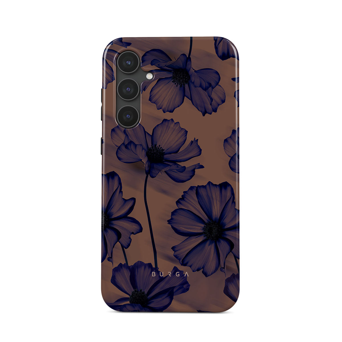 Discover our Velvet Night design. On a soft nude backdrop, blue poppies dance in the untamed rhythm of the wind. A blend of night's peace and daring energy, this Samsung Galaxy S23 FE phone case is perfect for those who dream big and seek adventure.