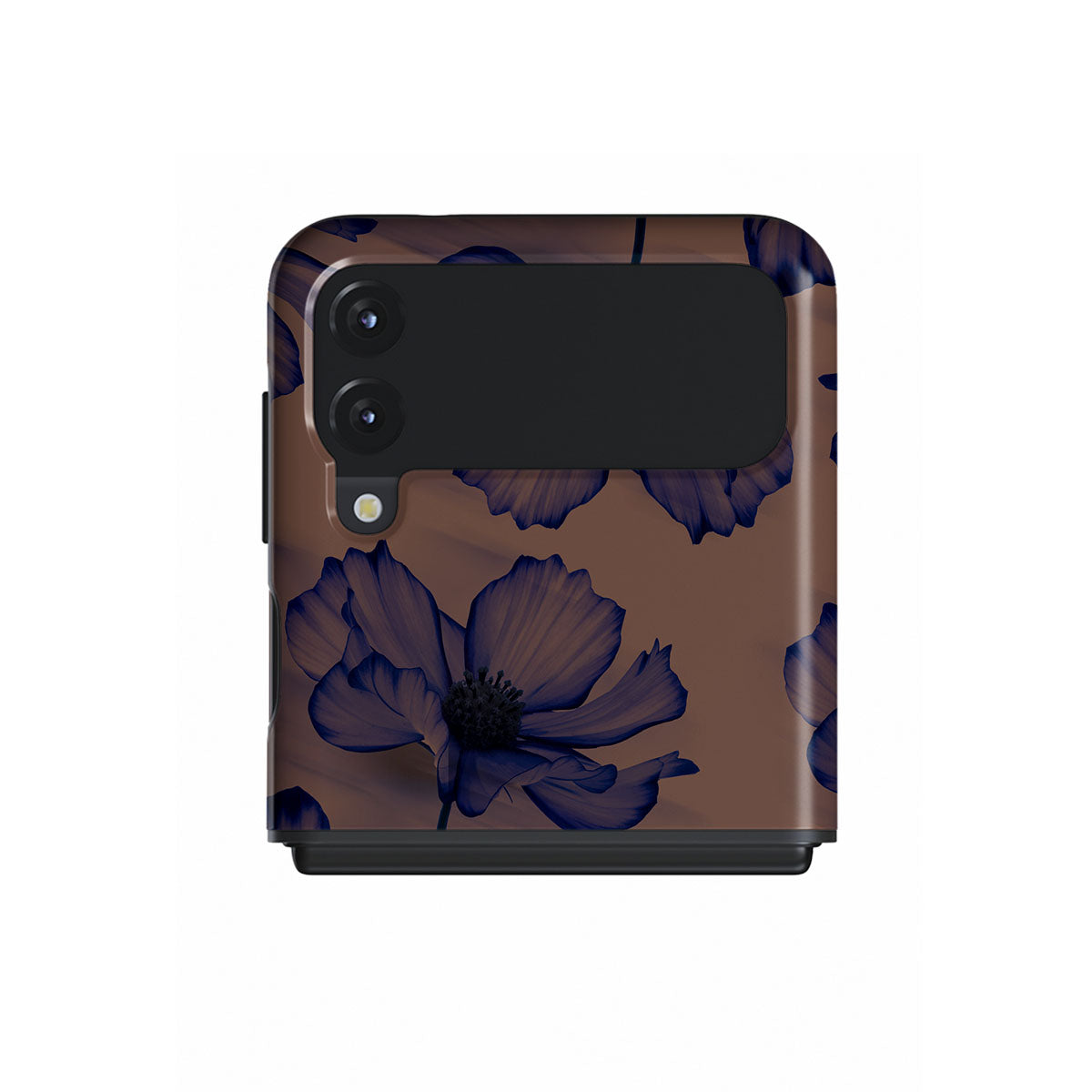 Discover our Velvet Night design. On a soft nude backdrop, blue poppies dance in the untamed rhythm of the wind. A blend of night's peace and daring energy, this Samsung Galaxy Z Flip 3 phone case is perfect for those who dream big and seek adventure.