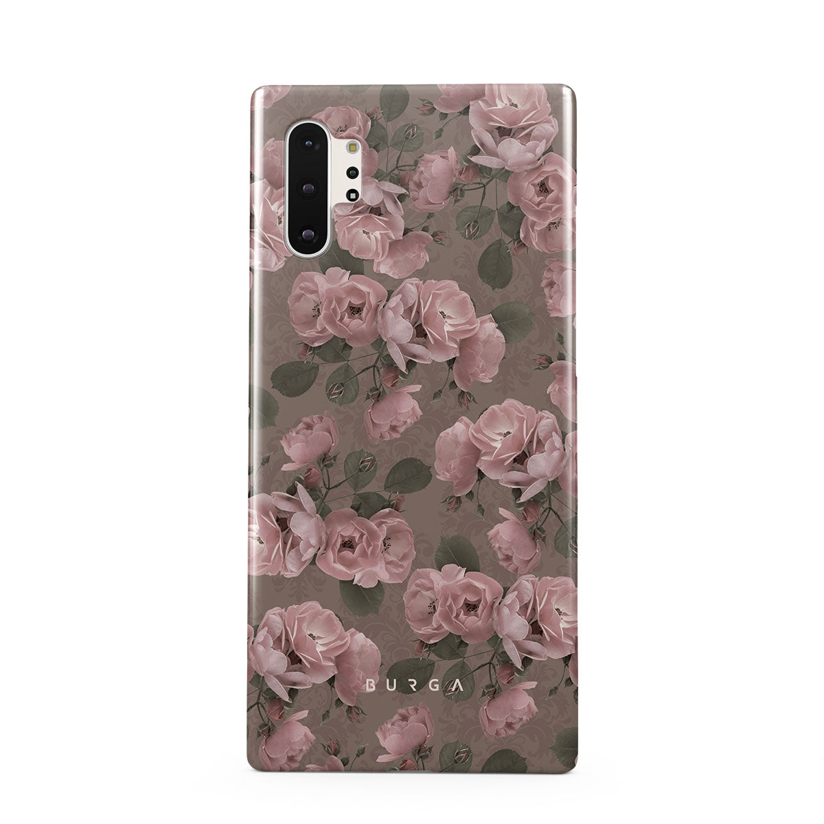 Blush, blooming roses transport you to an era of silent film stars and secret gardens. Our sophisticated Vintage Glamour Samsung Galaxy Note 10 Plus phone case design is perfect for the romantic at heart. It's for those who speak in glances and sighs and find comfort in the nostalgic whispers of floral romance.