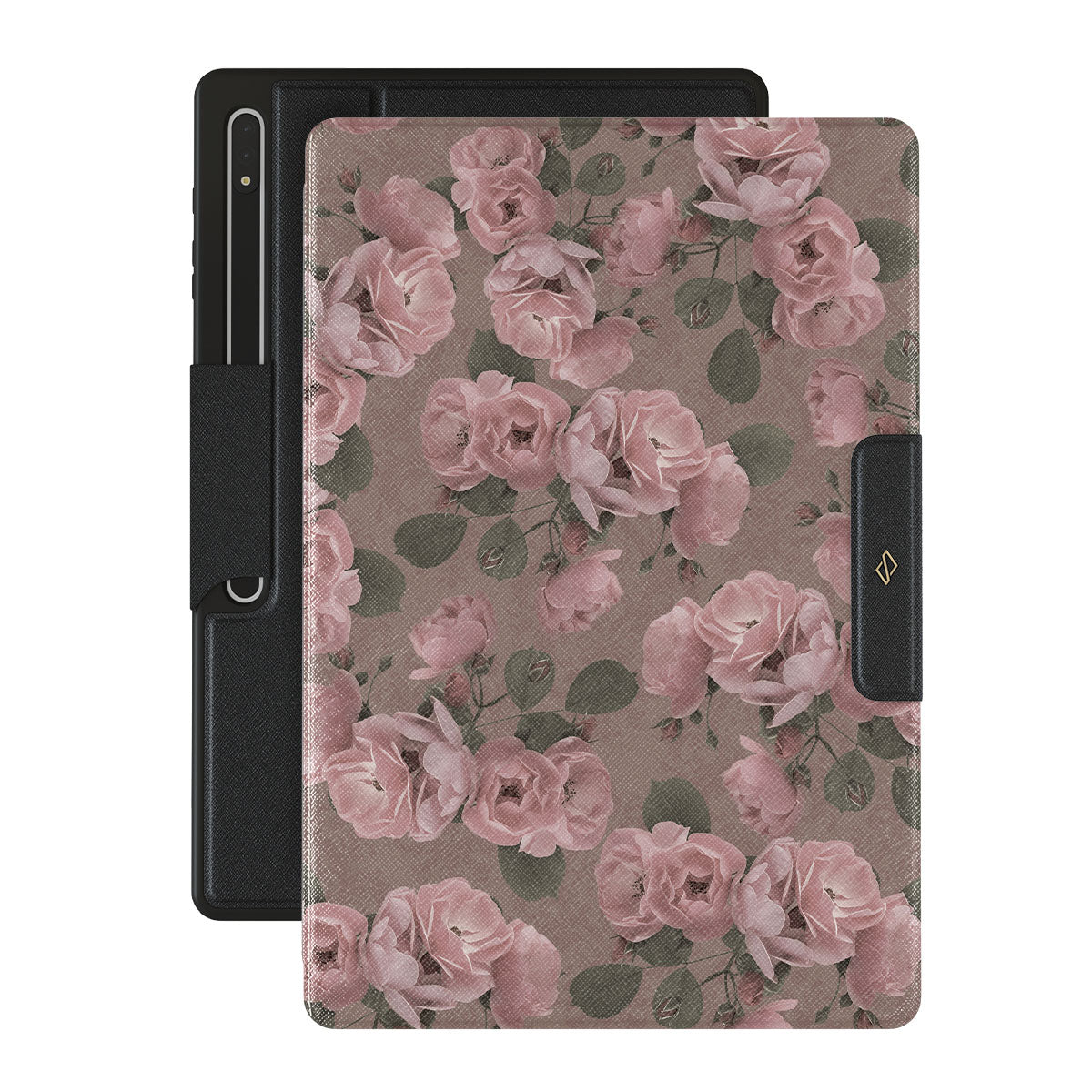 Blush, blooming roses transport you to an era of silent film stars and secret gardens. Our sophisticated Vintage Glamour Samsung Galaxy Tab S10 Ultra folio casedesign is perfect for the romantic at heart. It's for those who speak in glances and sighs and find comfort in the nostalgic whispers of floral romance.