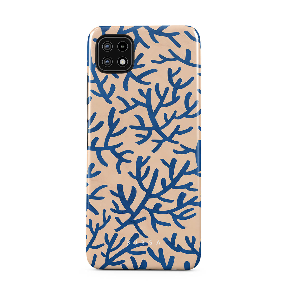 Everyone needs some vitamins and relaxing time by the sea, right? Yes! And our word-play-inspired Vitamin Sea Samsung Galaxy A22 5G phone case design is the perfect companion you must bring to the beach. Keep your phone protected in a case featuring a geometrical tree-like blue pattern. The case will surely catch an eye, and the selfies will look even more popping!