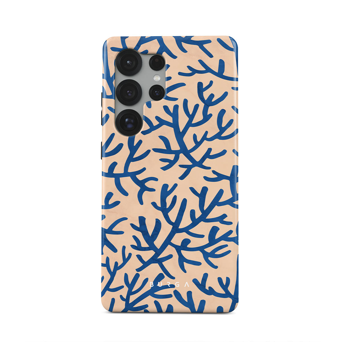 Everyone needs some vitamins and relaxing time by the sea, right? Yes! And our word-play-inspired Vitamin Sea Samsung Galaxy S25 Ultra phone case design is the perfect companion you must bring to the beach. Keep your phone protected in a case featuring a geometrical tree-like blue pattern. The case will surely catch an eye, and the selfies will look even more popping!