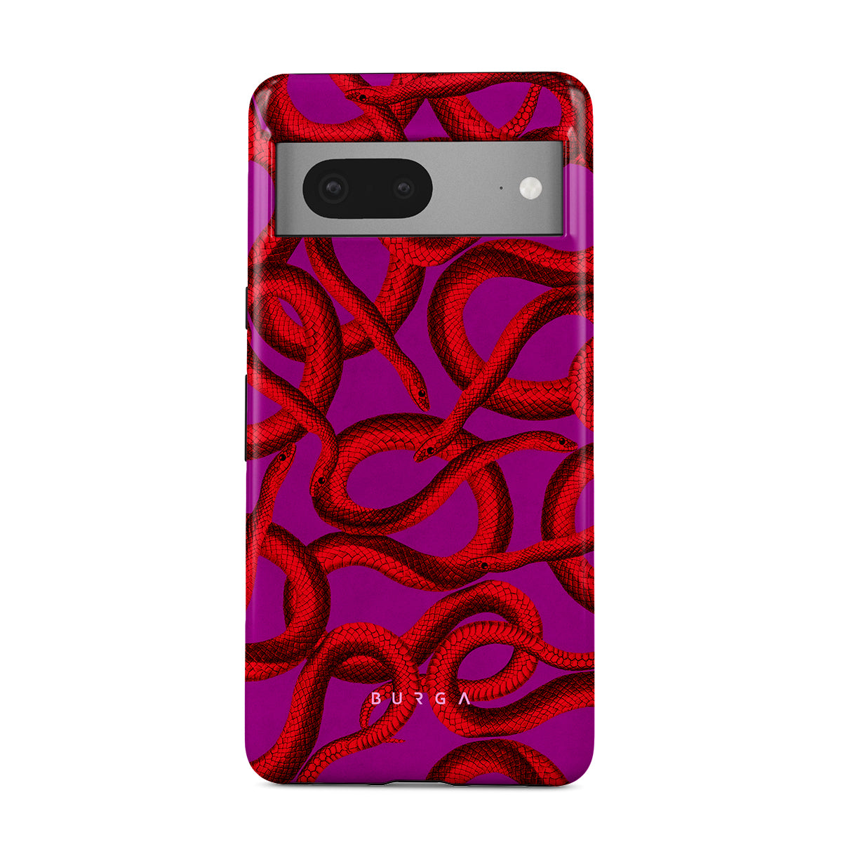 Watch Out Google Pixel 7 phone case design offers a fierce feel with a bright magenta colored background covered in red snakes pattern. Make a statement while protecting your phone, as this case is guaranteed to catch everyone's eye.