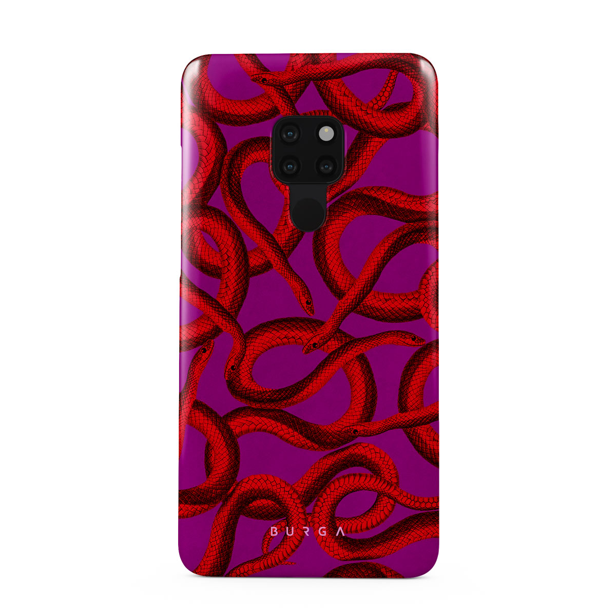 Watch Out Huawei Mate 20 phone case design offers a fierce feel with a bright magenta colored background covered in red snakes pattern. Make a statement while protecting your phone, as this case is guaranteed to catch everyone's eye.