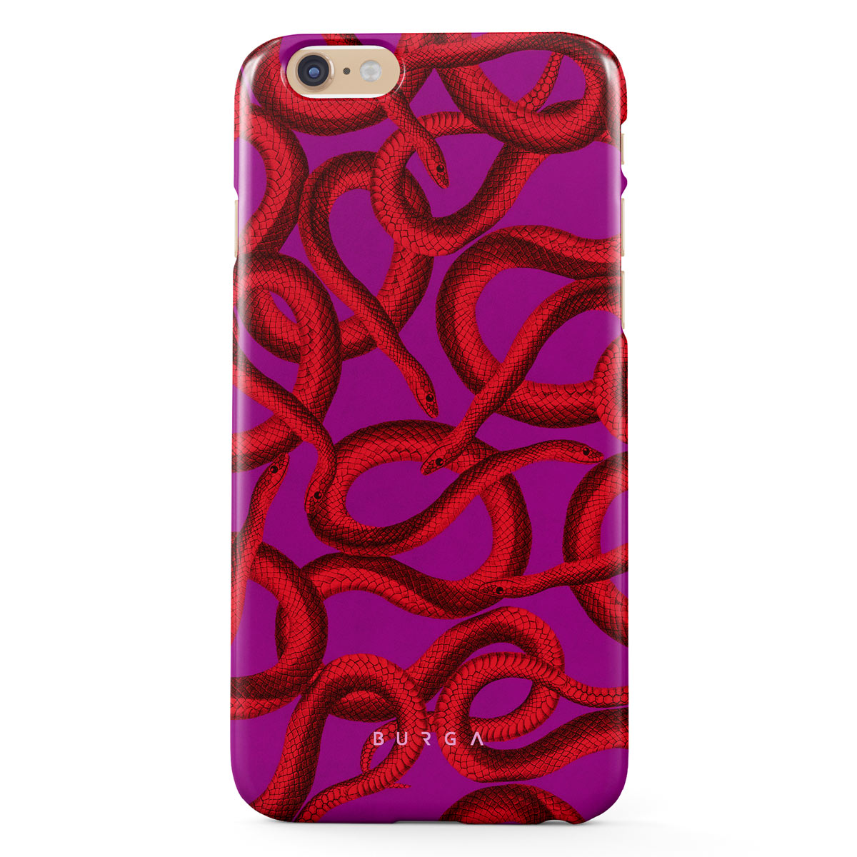 Watch Out iPhone 6 / 6S phone case design offers a fierce feel with a bright magenta colored background covered in red snakes pattern. Make a statement while protecting your phone, as this case is guaranteed to catch everyone's eye.