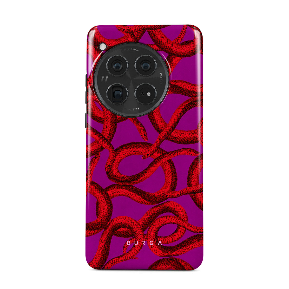 Watch Out OnePlus 12 phone case design offers a fierce feel with a bright magenta colored background covered in red snakes pattern. Make a statement while protecting your phone, as this case is guaranteed to catch everyone's eye.