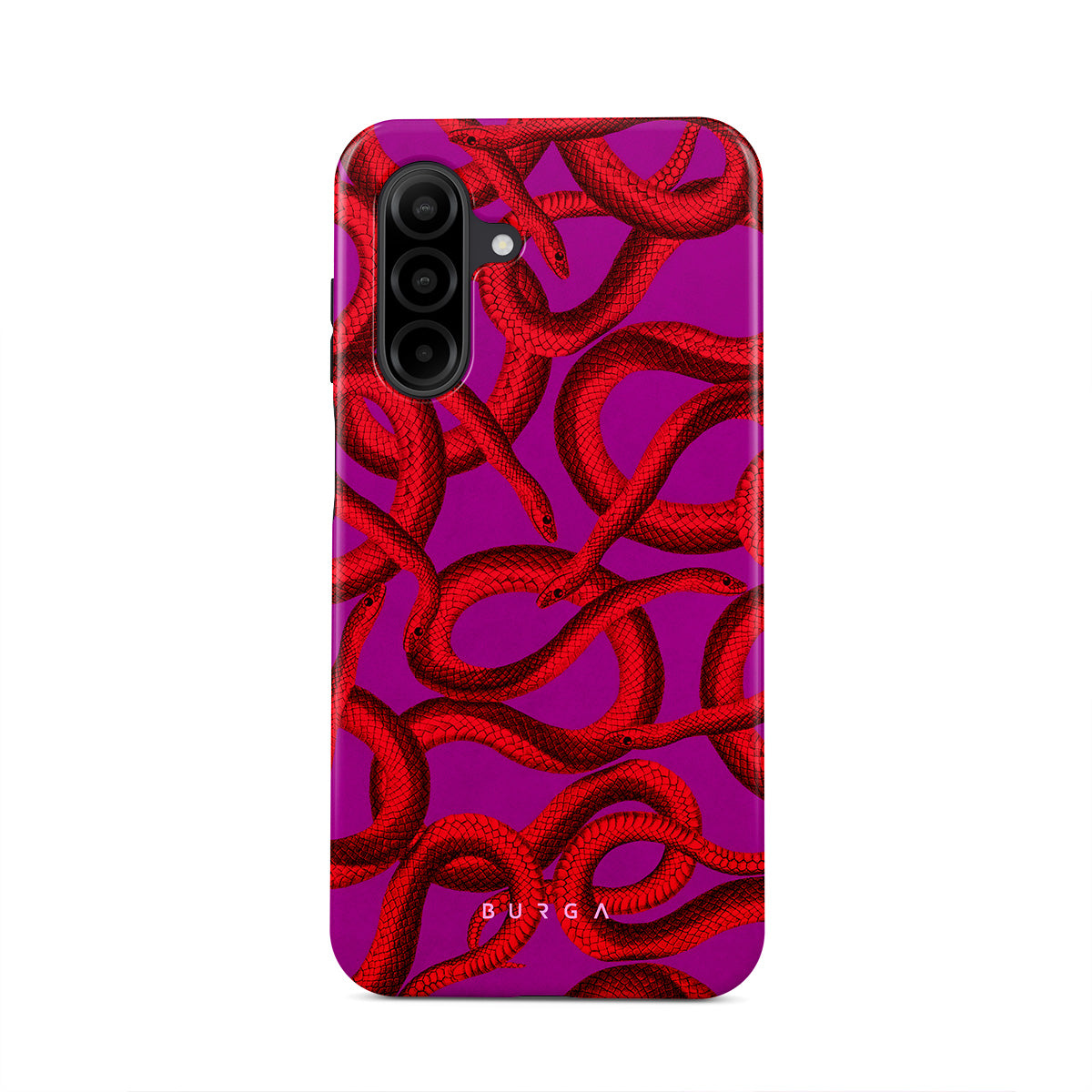 Watch Out Samsung Galaxy A26 5G phone case design offers a fierce feel with a bright magenta colored background covered in red snakes pattern. Make a statement while protecting your phone, as this case is guaranteed to catch everyone's eye.