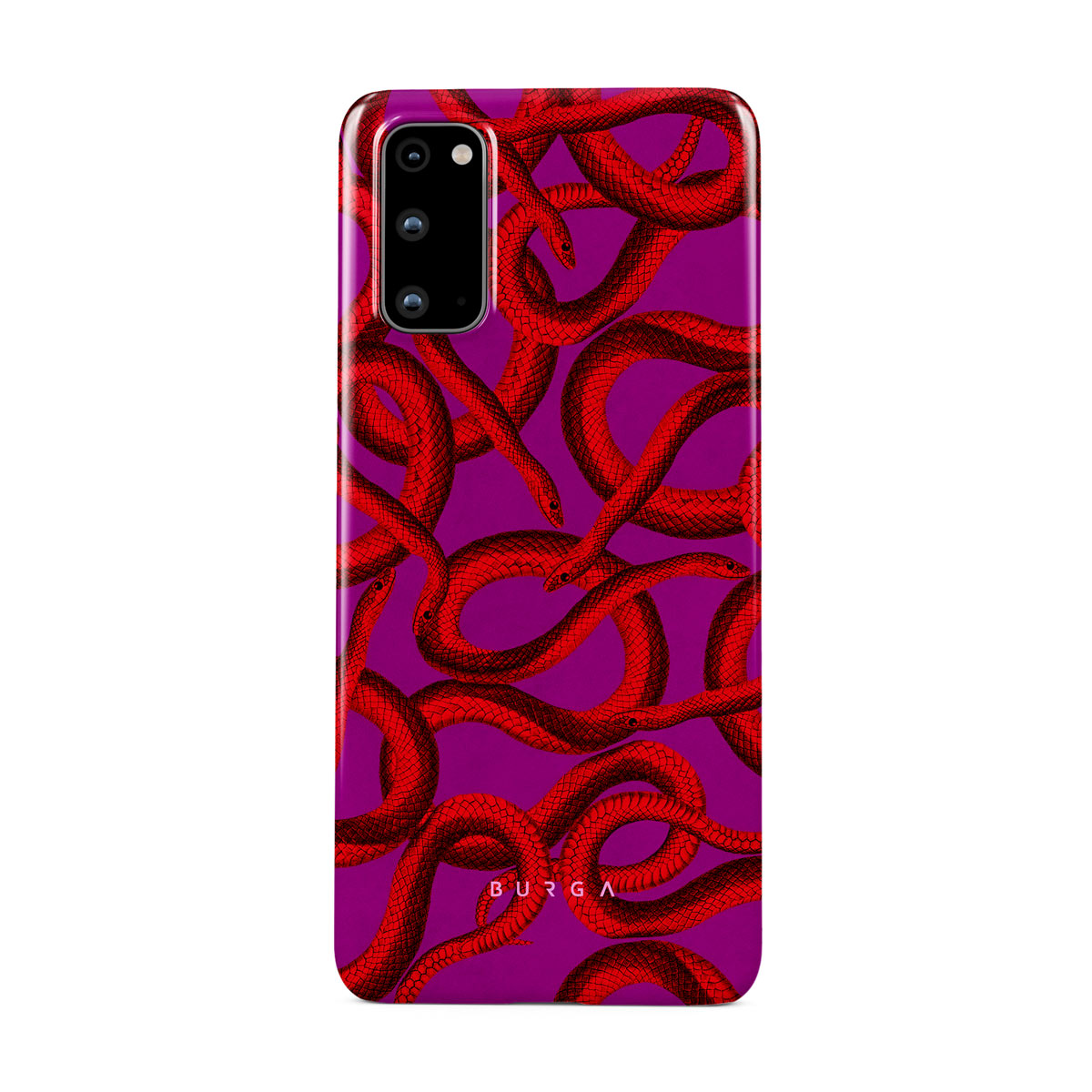Watch Out Samsung Galaxy S20 4G / 5G phone case design offers a fierce feel with a bright magenta colored background covered in red snakes pattern. Make a statement while protecting your phone, as this case is guaranteed to catch everyone's eye.