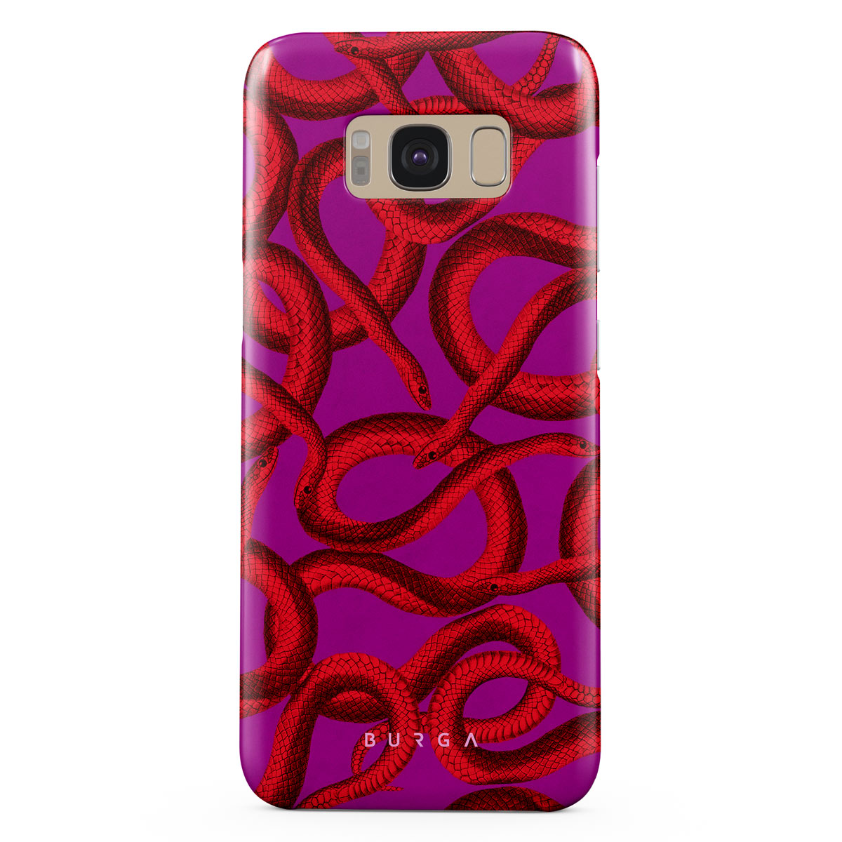 Watch Out Samsung Galaxy S8 phone case design offers a fierce feel with a bright magenta colored background covered in red snakes pattern. Make a statement while protecting your phone, as this case is guaranteed to catch everyone's eye.