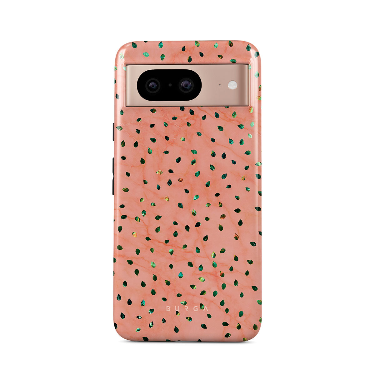 The Watermelon Shake Google Pixel 8 phone case offers a playful take on design merging. The watermelon seed-like specks showcase striking tropical design fragments that add a splash of color to the fresh and breezy coral pink marble. This way, the funny protective phone cover becomes a perfect statement piece for your summer outfits.