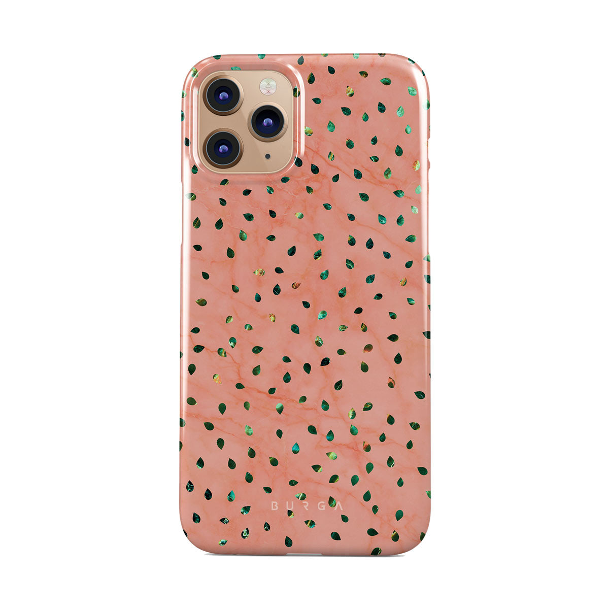 The Watermelon Shake iPhone 11 Pro Max phone case offers a playful take on design merging. The watermelon seed-like specks showcase striking tropical design fragments that add a splash of color to the fresh and breezy coral pink marble. This way, the funny protective phone cover becomes a perfect statement piece for your summer outfits.